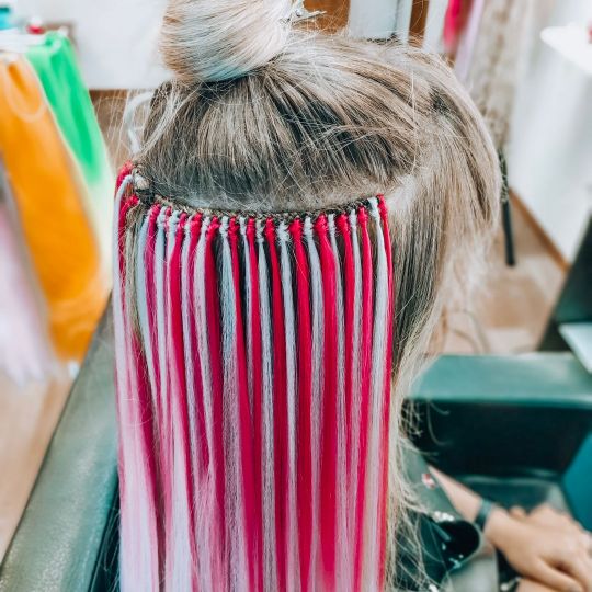 - Каркасное афронаращивание (цветные прядки)