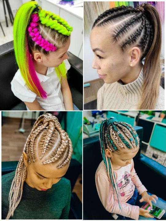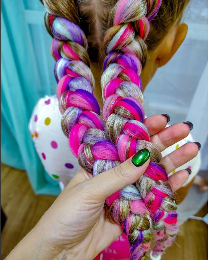 Их простота в универсальности - если заплести под свой цвето волос, то можно и в школу. А если добавить цветных прядей, то уже и на праздник.