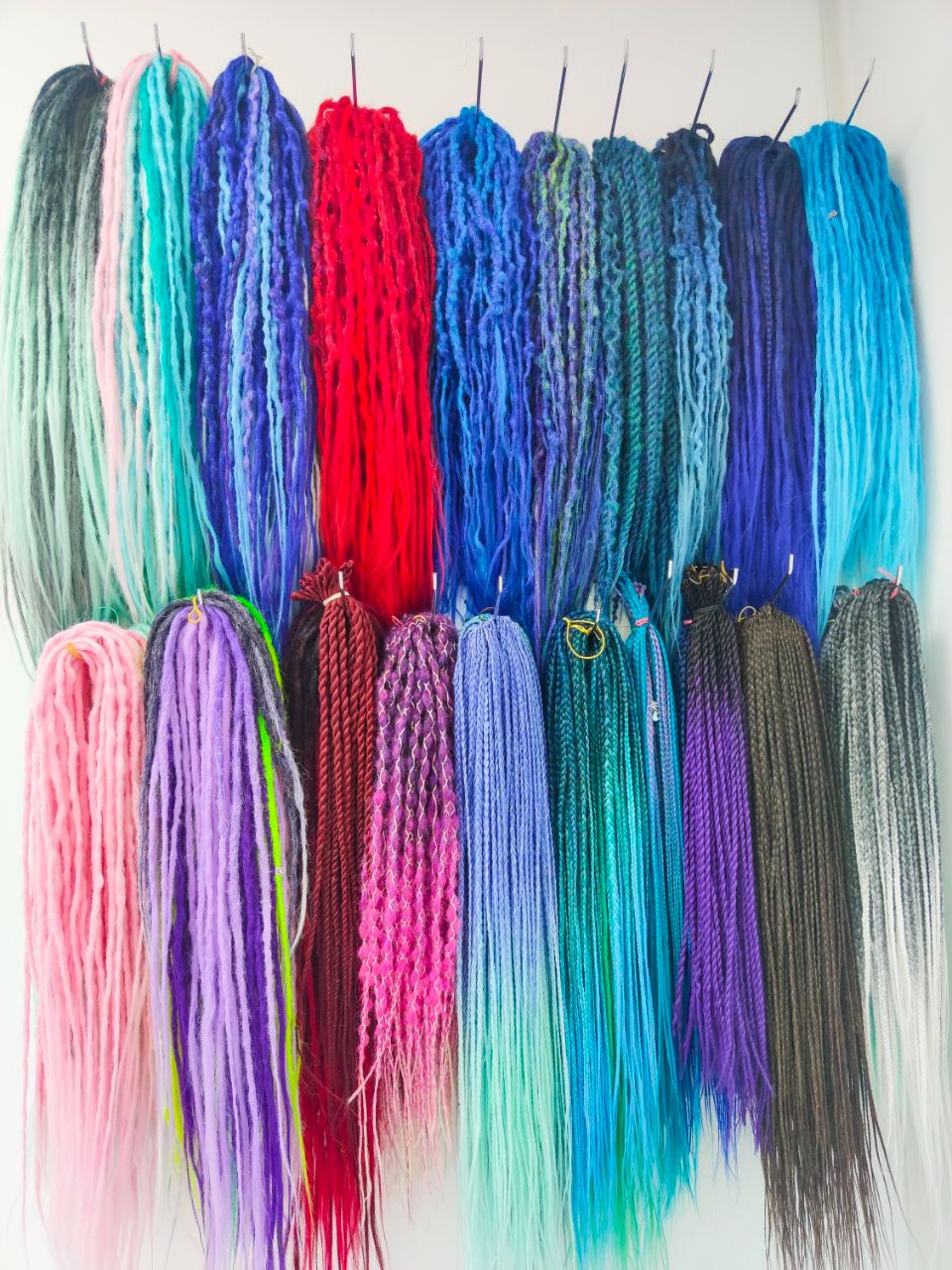 Очень часто используется не качественный материал - иногда даже совершенно не предназначенный для плетения - различные нитки, фольга для закрепления кончиков кос, воск для плетения, который забивает поры "белой" кожи.